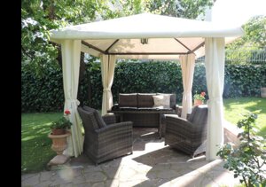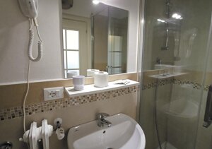 It is like a little apartament and has got private bathroom with a big cristal shower box , wc e bidet, a little kitchen with stove, fridge, microwave , coffe espresso machine, a private balcony of 45 square meters with table, chairs and sunny bed. It has air conditioning and can have twins bed if required.